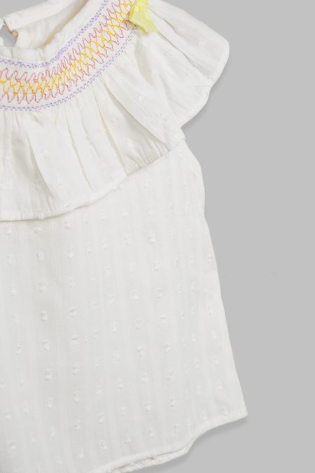 - Basic color : White with Yellow Line Smock details