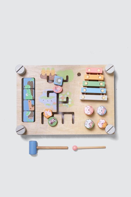 Includes xylophone, hammer toy, maze, puzzle, wooden gears, simple bolt & screw set, and basic counting/number/shape board. - Safe for children: made from smooth, high-quality materials