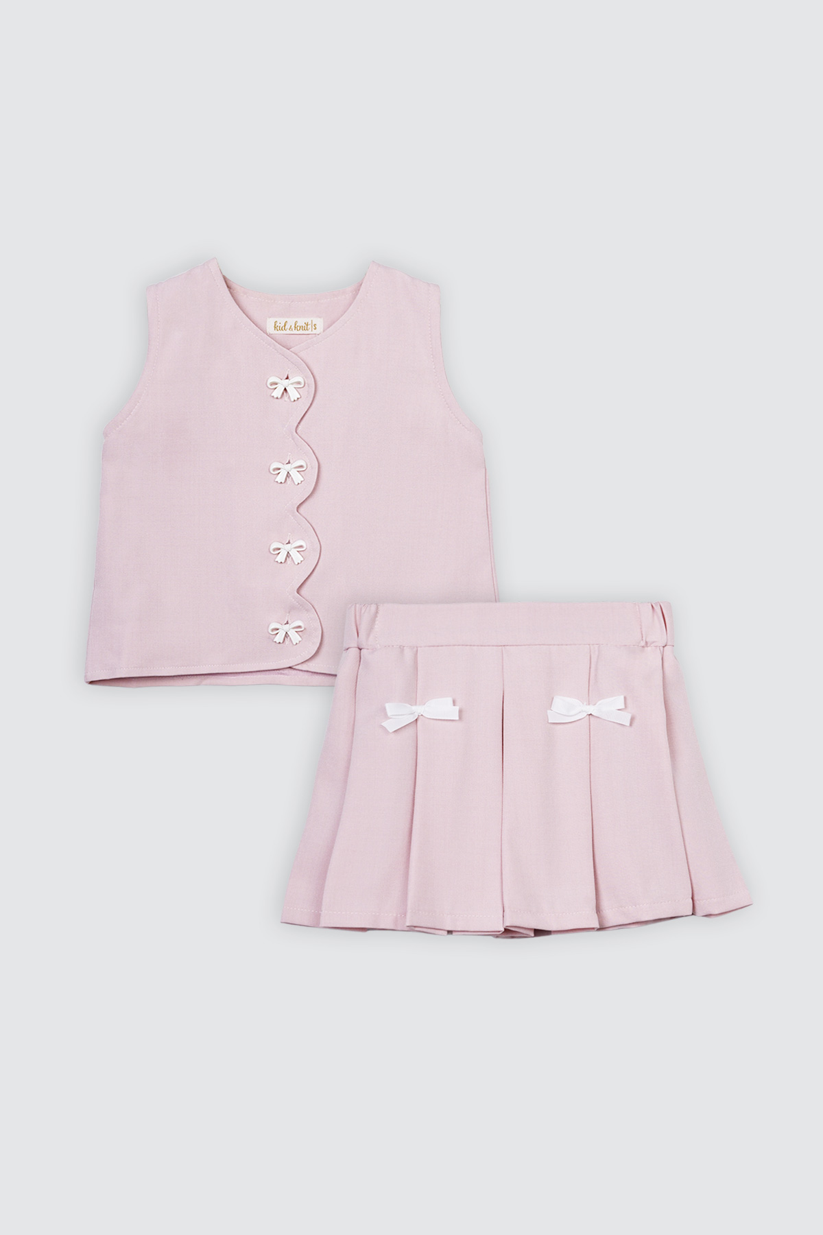 Eonni Ribbon Scallop Set Pink White