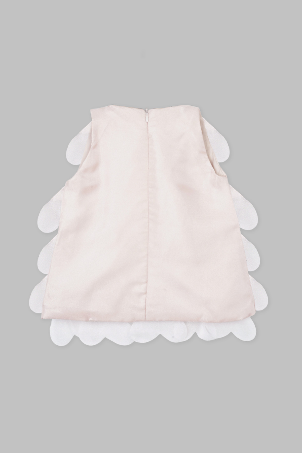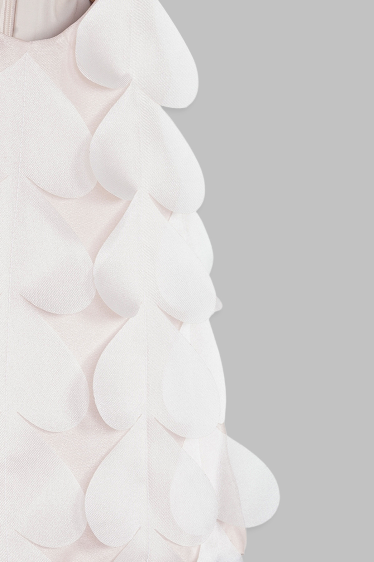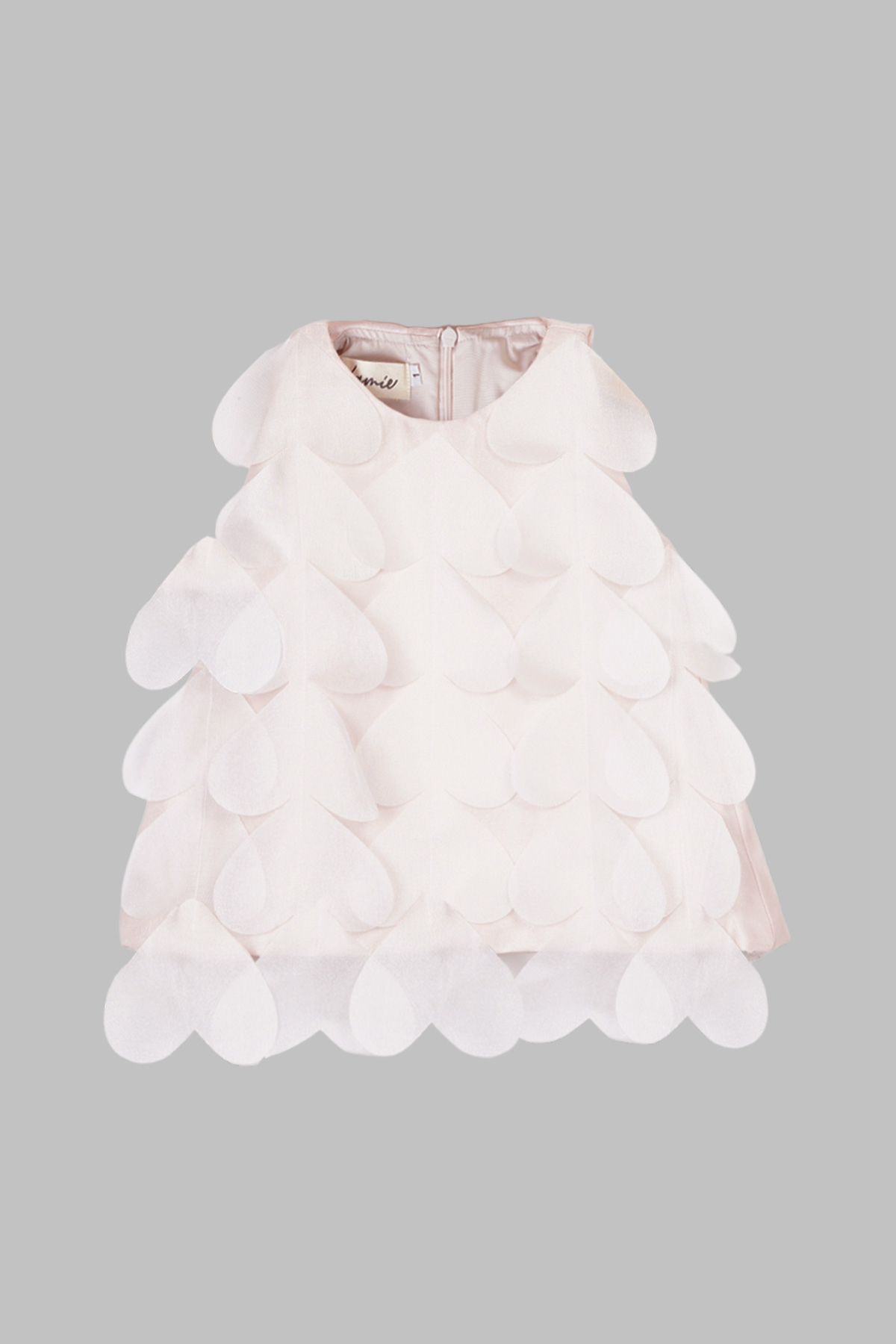 - Sleeveless A-line dress covered in heart shaped petal layers
